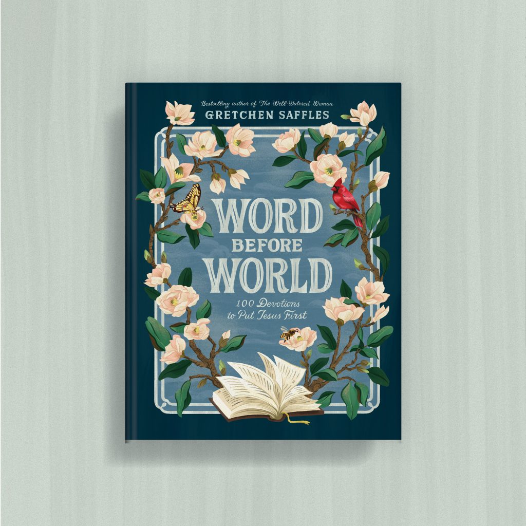 I had the opportunity to design Gretchen Saffles’ first trade book, The Well-Watered Woman, a few years back and loved working with her. When she expressed her vision for this next book, Word before World, to have a vintage yet modern feel using nature imagery, I knew exactly whom to contact: Jill De Haan.